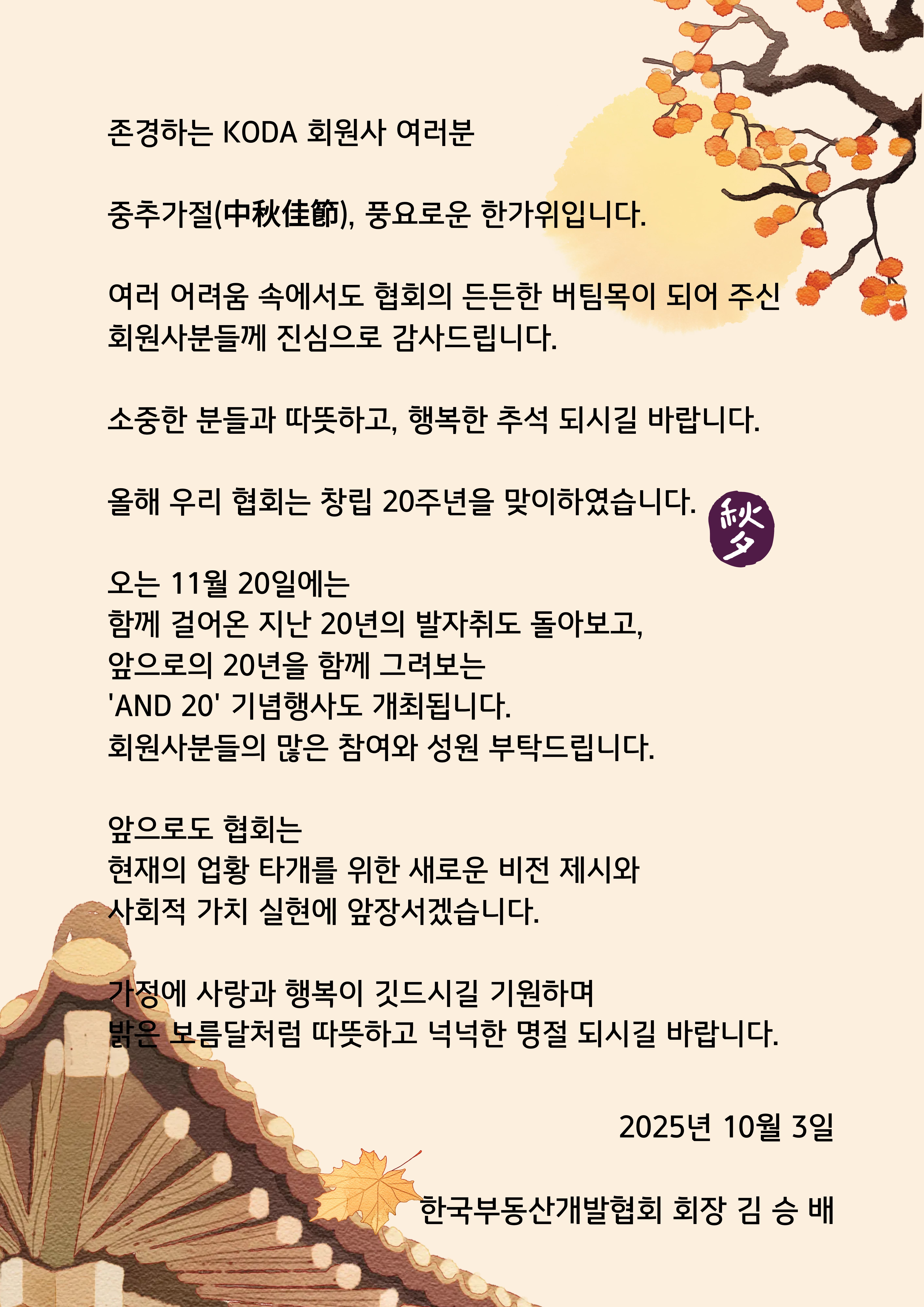 [한국부동산개발협회] 20주년 기념행사 개최 안내(25.11.20)